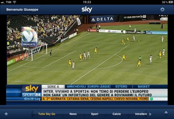 Dallo scorso primo marzo gli abbonati HD di Sky possono usufruire gratuitamente* del servizio Sky Go. Precedentemente il servizio Sky Go costava 7€ al mese. L’app funziona a meraviglia anche se ovviamente riesce a fornire una qualità elevata dell’immagine se collegata ad una rete WiFi. Tutto sommato anche in 3G devo dire che il servizio streaming fornisce una qualità elevata.
