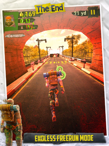 Come vi abbiamo già accennato, il gameplay è del tutto simile a quello di Temple Run: il nostro protagonista continua a correre automaticamente, e noi dovremo agire sul touch screen o inclinare il dispositivo per farlo girare, saltare o accovacciarsi, sia per ottenere punti che per evitare ostacoli o terreni pericolosi. A cambiare totalmente rispetto a Temple Run è la location del gioco: come suggerisce lo stesso titolo, stavolta ci troveremo in un ambiente da “fine del mondo”, con lava, veicoli ed edifici distrutti, e crolli ovunque.